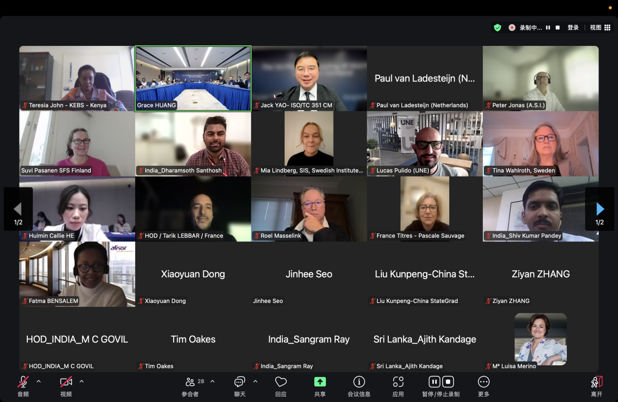 据悉,ISO/TC 351秘书处与塞内加尔国家标准机构(ASN)达成结对协议,并邀请塞内加尔国家标准机构(ASN)标准化与认证项目经理法图玛塔·恩戈内·恩多耶一同筹备和主持本次会议。参会的中国代表团成员由来自TCL实业控股有限公司、大连金慧融智科技股份有限公司、国家电网有限公司、恒洁卫浴集团有限公司、蚂蚁科技集团股份有限公司、美的集团、中移在线服务有限公司、雅迪科技集团有限公司、商业贸促会、方维(深圳)国际商业有限公司、万声通讯实业有限公司和宁波方太营销有限公司等企事业单位的专家组成。
